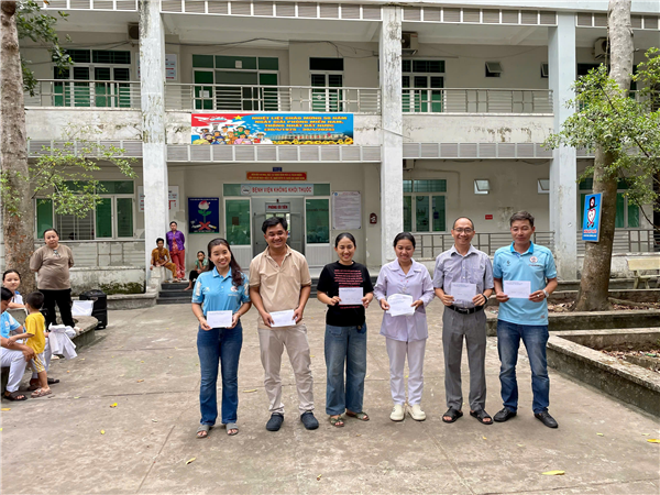 Bs Nguyễn Hoàng Cường, UV. BCH Công đoàn cơ sở Trung tâm Y tế thành phố Hà Tiên trao quyết định khen thưởng cho các đội.